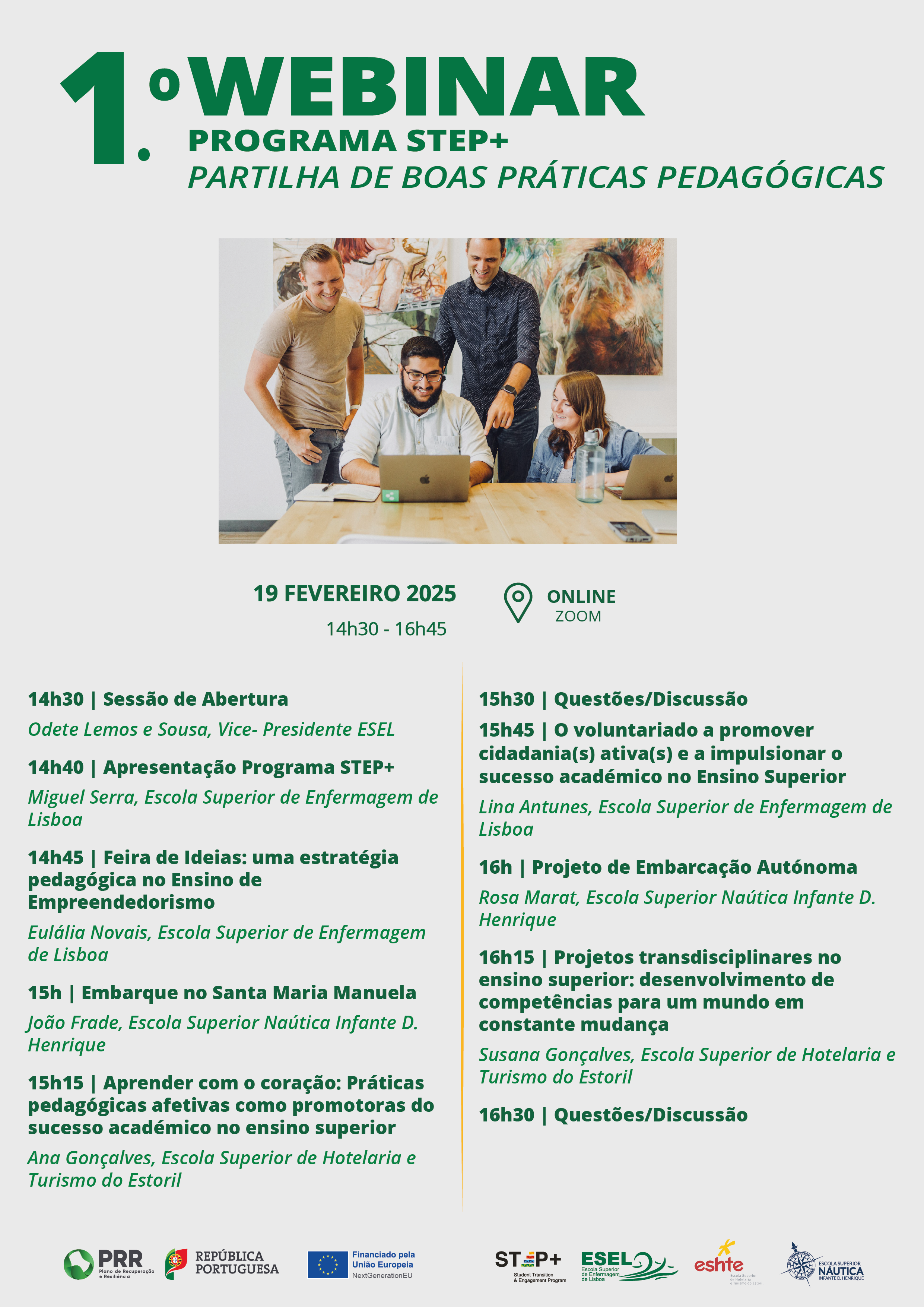Realizou-se no passado dia 19 de fevereiro o 1º Webinar "Partilha de boas práticas pedagógicas" no âmbito do projeto STEP+ cofinanciado pelo PRR.